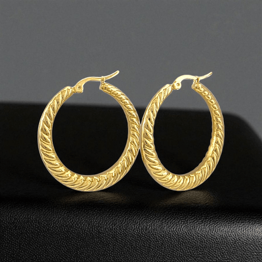 Créoles dorées chunky 27x25mm - Design côtelé épais 12mm large