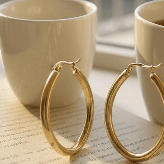 Créoles dorées ovales 45x33mm - Design tube épais 4mm intemporel