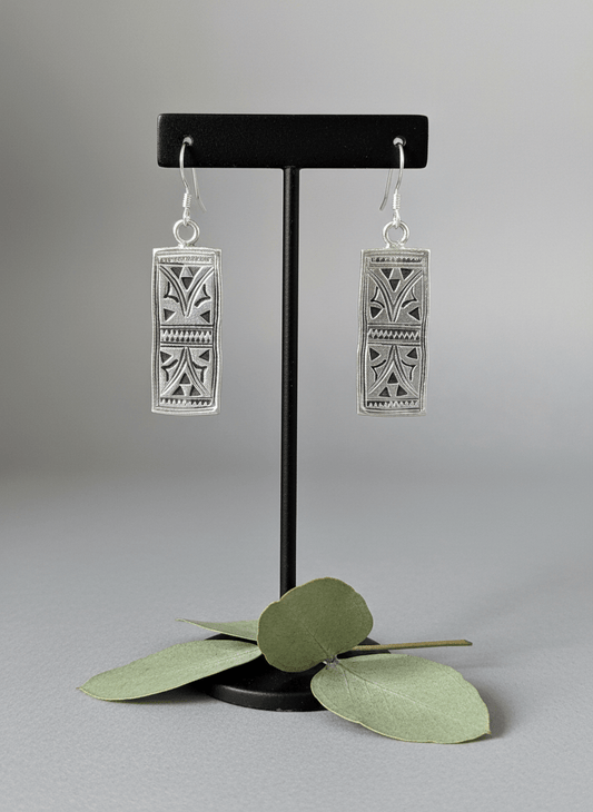 Boucles d’Oreilles Rectangulaires Gravées en Argent 925 – Style Tribal