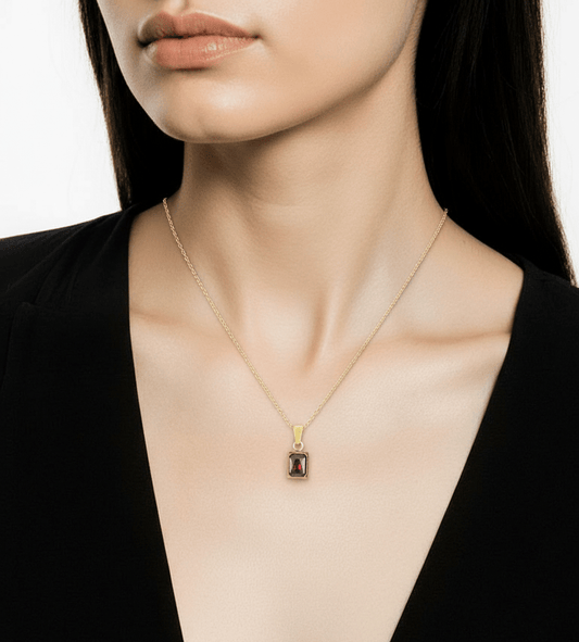 Collier Pendentif Rectangulaire Rouge grenat – 10x9 mm