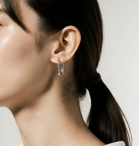 Élégance double – Boucles d’oreilles argentées 25x10 mm en acier inoxydable