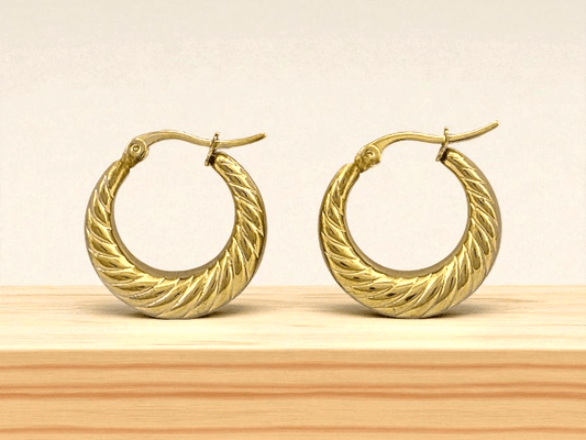 24mm Textured Hoop Earrings in Gold Stainless Steel