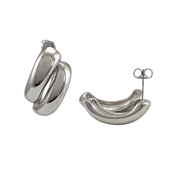 Boucle d’oreille dorée bombée à double arc, vue de face, fond blanc